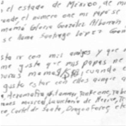 En el ejemplo anterior, es un niño muy introvertido, no le gusta el contacto con la gente y también muestra una ligera tristeza. Las mayúsculas están sobre alzadas, por lo que ve los problemas mas graves de lo que son y el se siente indefenso para hacerles frente.